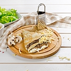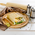 Мы предлагаем гостям 26 видов блинов с мясом, курицей, ветчиной, сыром, овощами, красной икрой, сёмгой, а также со сладкими ягодными, творожными, шоколадными начинками. А также мы производим сезонные горячие напитки: облепиховый чай и безалкогольный глинтвейн, и прохладительные: клюквенный морс, домашний лимонад.