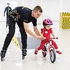 Зимой мы тренируемся в тёплом и комфортном зале для занятий на роликах, велосипеде, беговеле, и других дисциплинах. Летом дополнительно открываются уличные площадки.