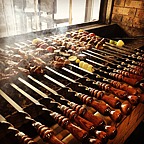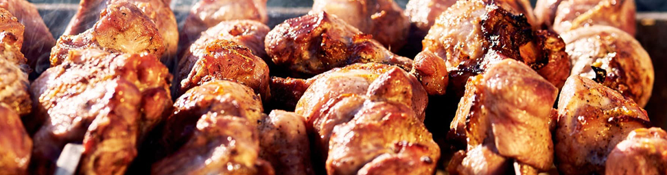 Жарим на мангале: • мясные и рыбные шашлыки; • люля-кебабы из свинины, курицы и баранины; • классическую и вегетарианскую шаурму; • овощи — кукурузу, кабачки, картофель и т. д. К еде предлагаем чёрный, зелёный и фруктовый чай, кофе и популярные газировки.