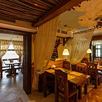 Мы постарались создать для вас атмосферу гостеприимного русского дома и домашнего уюта. Наше кафе сочетает в себе современный комфорт и национальный колорит. В интерьере преобладают натуральные материалы: деревянная мебель, ковка, текстиль. Добродушный персонал в стилизованных костюмах не оставит без внимания ни одного гостя.