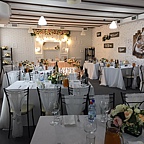 "Bahnhof" – это место встреч. Место, где люди испытывают радость ожидания друг друга, предвкушение новых эмоций от будущего незабываемого путешествия, путешествия в мир вкуса и отдыха от повседневной суеты. И именно такую атмосферу мы создаем в нашем кафе "Bahnhof". По периметру основного зала курсирует паровозик, который к каждому столу доставляет напитки.