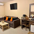 К услугам гостей предоставляются 3 категории номеров, каждый из которых оформлен в индивидуальном дизайнерском стиле. Во всех номерах имеется все необходимое для комфортного отдыха: удобная мебель, ортопедические матрасы, мягкие гипоаллергенные подушки, теплые одеяла, напольное покрытие, телевизор с плоским экраном, кондиционер, холодильник, фен, чайник. Современный санузел оснащен ванной, где для гостей приготовлены уютные махровые халаты и мягкие одноразовые тапочки. Номера украшены современными, светонепроницаемыми шторами теплых оттенков. В любое удобное для вас время предлагаются разнообразные завтраки, которые подаются в номер. Чтобы взбодриться чашечкой свежего кофе вы можете воспользоваться чайно-кофейной картой.
