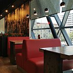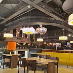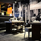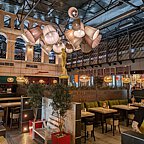Интерьер основного зала выполнен в стиле уличных европейских кафе.