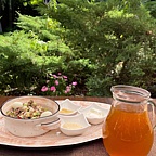Ресторан "Русский чай" - удивительный, многоликий в своём неповторимом проявлении и на любой, даже самый изысканный вкус искушённого гостя! Название этого чудесного места несёт в себе теплоту и уют интерьера, а кроме того, обещание волшебного разнообразия изысканных и утончённых угощений. И в этом легко убедиться, совершив небольшую прогулку по территории ресторана, где есть на что полюбоваться. Приятный шум водопада доброжелательно встретит Вас ласковым шорохом, а извилистый ручей с рыбами проводит к резным беседкам, где будет радовать вид небольшой альпийской горки, одним словом, живописный уголок, где можно забыть, о том, что находишься в суете городского ритма.