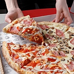 В наших пиццах 100% томатный соус, натуральный сыр моцарелла, качественные мясные изделия и тесто для пиццы собственного приготовления. Каких только пицц у нас нет – классическая пепперони, мясная, с ананасами, с солёными огурцами, с соусом терияки, есть пицца с картофельным муссом и даже с креветками! А ещё есть сладкая десертная пицца.