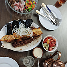 У нас Вы можете заказать шашлык из баранины, говядины, курицы или печени - всё готовится на настоящем мангале. Любителям чего‑то особенного предлагаем попробовать люля‑кебаб: на выбор - из баранины или курицы.