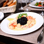 Особая гордость ресторана – блюда со свежими дальневосточными морепродуктами. Гребешок, краб, трепанг, трубач, кукумария, устрицы, кальмар попадают на нашу кухню прямиком из Японского моря. В течение года мы получаем абсолютно натуральные морепродукты в соответствии с сезоном от местных рыбаков, минуя рынки и магазины.