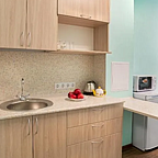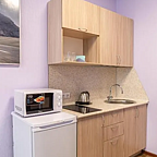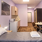 Каждый номер оборудован собственной кухней, так что подкрепиться можно в любое удобное время. Для готовки есть все необходимое: посуда, электрический чайник, микроволновка. Можно посетить множество ресторанов и кафе, которые находятся в шаговой доступности.