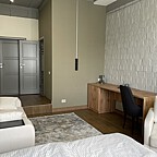 Отель предлагает просторные номера, стильные интерьеры, а также персональное внимание к каждому гостю. Также на территории есть кофейня, в которой Вы можете провести у нас деловую встречу, поработать за ноутбуком с чашечкой любимого кофе или просто перекусить.
