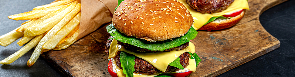 Самые вкусные и сочные бургеры только в "РОЯЛ БУРГЕР". Наша бургерная предлагает Вам доставку вкусной еды до вашего дома или офиса. Котлеты в наших бургерах только из свежего мяса. Дополнительно к Вашему бургеру Вы можете заказать картофель – фри, салаты, а также большой выбор вкусных соусов.