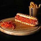 Выбирайте такой, который соответствует Вашему вкусу и настроению, — с длинной баварской колбаской или говяжьей сосиской, со свежими овощами или маринованными огурчиками, с классическим томатным соусом или острым соусом сальса, классическая булочка или цветная? Выбор за Вами.