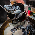 Уверены, Вы по достоинству оцените блюда нашего меню, над которыми стараются настоящие профессионалы. Заходите и, кроме мидийных сетов, пробуйте свежайшие устрицы и брускетты, окунитесь в атмосферу теплой расслабленности и вкуса!