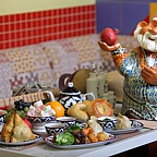 Богатство ярких красок, восточная музыка и изобилие предлагаемых угощений – это и есть сказка, в которую попадает гость кафе "Али-Баба". К услугам посетителей два зала, выполненных в красочном восточном стиле.