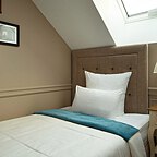 Европейские номера в классическом стиле порадуют гостей комфортом и изысканной отделкой. Каждая деталь интерьеров пронизана истинным духом Петербурга, а мансардные окна и французские балконы напоминают о романтике камерных отелей Европы. Отель объединен уютным внутренним двориком с ресторанным комплексом "Симпозиум", в котором подается континентальный завтрак.
