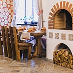 Трактир оформлен по настоящему – по – русские. Весь интерьер из дерева и росписи, некоторые детали интерьера были раздобыты в подвале у бабушки и отреставрированы. но сердце "Избы" - это конечно действующая русская печка.
