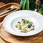Это место популярно ещё и на завтраки - домашние сырники со сметаной, омлет с рикоттой собственного производства, брускетты (преимущественно с дарами моря). Звёзды программы - оливье с крабом и камчатский кальмар на гриле. Здесь пекут пиццу в правильной печи (с собственными страчателлой и моцареллой), подают пасту - всеми любимый comfort food.