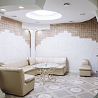 - Зона отдыха, где можно насладиться ароматным чаем или кофе, расположившись на мягких диванах и отдохнув после посещения сауны.