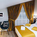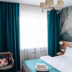 - В номерах есть все необходимое для комфортного длительного проживания: холодильник, шкаф, телевизор, кондиционер, WI-FI, чайный набор, большая рабочая поверхность.