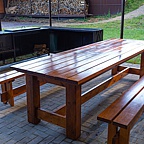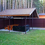 Вашу дружную компанию встретит атмосферный двухэтажный новый дом с приусадебной зелёной территорией, баней на дровах, банкетной верандой, парковкой на 5 и более автомобилей, с собственным выходом в сосновый лес.