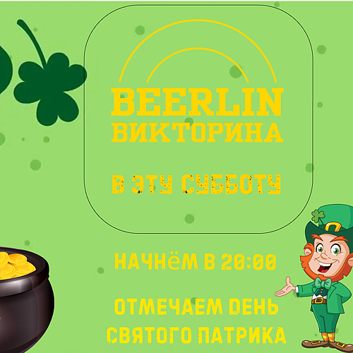 14 марта (суббота) в Beerlin будет жарко — отмечаем День святого Патрика!