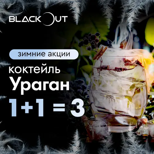 Мы так любим радовать вас! Поэтому в Blackout Lounge уже стартовала зимняя акция: закажите два коктейля из выбранной линейки — и третий такой же получите в подарок.