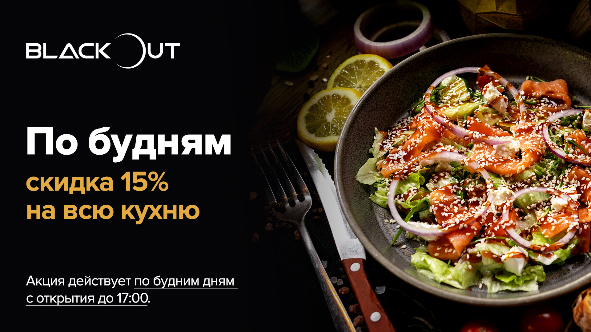 Скидка 15 % на Кухню с открытия и до 17.00 с понедельника по пятницу