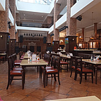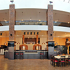 Просторные залы ресторана находятся на 2 этажах и способны одновременно вместить 450 человек.
