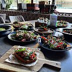 Доставка еды в Липецке – одно из направлений работы кафе «Театро». Наши шеф-повар и команда профессиональных кулинаров готовят блюда кухонь различных народов. У нас Вы можете заказать доставку на дом осетинских пирогов, блюд на мангале, сочных бургеров и сэндвичей, пиццы и нежнейших десертов. Среднее время доставки еды в Липецке – 40 минут. Мы привозим блюда горячими!