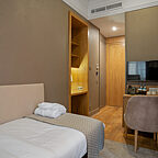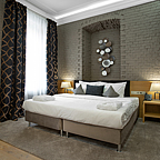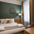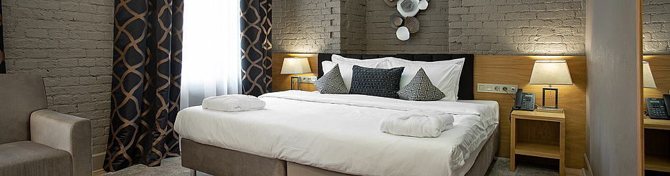Отель находится в самом центре столицы в шаговой доступности от главных достопримечательностей столицы. Отелю присвоено 5 звезд. Мы подошли с душой к оформлению каждого номера и сделали их максимально комфортными и уютными для Вас. Все номера оборудованы кондиционером, сейфом, спутниковым телевидением, телефоном, столом и креслами.