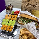 Пласты нежной бескостной телятины и свинины или курицы, замаринованной по особой технологии и приправленной специями, нанизывают на вертикальный металлический стержень так, чтобы получился ровный столбик, и обжаривают на гриле до румяной корочки, медленно поворачивая. Повар срезает поджаренные края острым длинным ножом, и получившиеся тонкие полоски сочного жареного мяса являются главным компонентом нашего блюда. Мы создали бутерброд «данар», адаптированный к нашим северным условиям: разработали новый способ маринования мяса, сделали свою булочку и стали использовать различные оригинальные соусы.