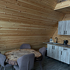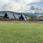На территории турбазы расположены 6 круглогодичных А-фреймов на 4 и 6 персон. Каждый домик - уютное место для отдыха с эксклюзивным дизайнерским интерьером, баней и чаном с сибирскими травами. Из окон кемпинга открывается вид на легендарную тополиную рощу разнообразных сортов тополей.