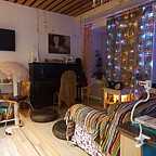 - У нас уютно - атмосфера как дома: холл с фортепиано, коллекция виниловых дисков и проигрыватель к ним, DVD проигрыватель, диски, коллекция аудиокассет с магнитофоном. Много настольных игр, наборы для живописи.