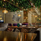 Интерьер выдержан в стиле яркого и солнечного африканского континента с этническими мотивами, с обилием зелени и растений.