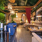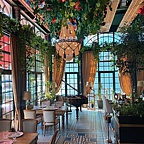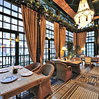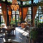 Отдельного внимания заслуживает интерьер "Зимнего сада", где инсталляция на потолке меняется раз в сезон. В меню традиционно сочетаются лучшие творения русской и французской кухонь.