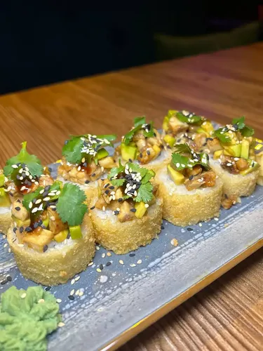 Филе кальмара в кляре. Подается со сгущенным молоком с васаби