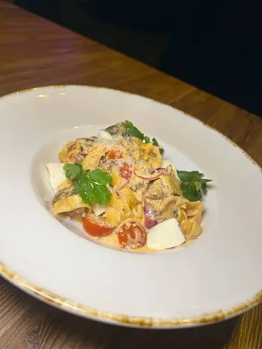 под сладко-острым соусом и луком порей