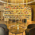 Интерьер заведения продуман до мелочей и призван дарить атмосферу роскоши и комфорта. Первый этаж оформлен в тёмных тёплых оттенках: стены из серого камня сочетаются с древесными мотивами, а высокие патинированные зеркала с мягкой подсветкой добавляют пространству глубины. Второй этаж воплощает лёгкость и воздушность - его отличает светлая палитра мебели и интерьера.