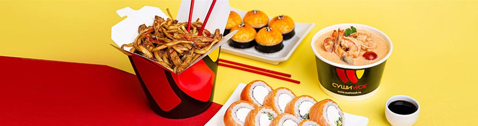 "Суши Wok" - это сеть суши-баров по всей стране! Наши основные преимущества - доставка 24 часа, высочайшие стандарты качества, доступные цены. У нас вкусное и разнообразное меню, составленное из блюд японской и китайской кухни.