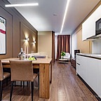 Номер в "Dionis Art Apartments" - это Ваш дом. Временный, но полноценный. Большинство номеров имеют площадь около 40 кв.м. В них есть телевизор с доступом в интернет, Wi-Fi, рабочий стол, обеденный стол, микроволновая печь, стиральная машина, посудомоечная машина, удобная кровать, полноценная кухня, тропический душ/ванная и даже гардеробная! Многие элементы мебели выполнены на заказ из массива ясеня и натурального камня. Благодаря этому каждый номер обладает не только функциональностью, но и уникальным дизайном.