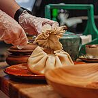 В меню "Гивико" представлены старинные рецепты, собранные и бережно сохранённые до наших дней. Здесь подают рулетики патрижани, кучмачи и сациви, соко в кецах и жареный сулугуни. На первое готовят бозбаш, кахетинскую хашламу, луковый хахви с сулугуни и наваристый чанахи из баранины. Отдельно стоит отметить хинкали, которые здесь готовят как в обычном, так и в шпинатном, ярко-зелёном тесте, добавляя одну из семи ароматных начинок.