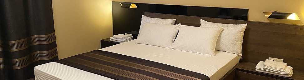 Отель предлагает для размещения номера самых различных категорий (Стандарт, Джуниор-Сюит, Люкс), каждый из которых оснащен кондиционером , телевизором, холодильником. В номерах двуспальные и односпальные кровати, ортопедические матрасы, прикроватные тумбы, настольные лампы, встроенный шкаф, кондиционер, мини-бар, стол трансформер, стулья. В ванной комнате: душевая кабина, раковина, унитаз, фен, полотенца, тапочки, средства личной гигиены. В числе бесплатных услуг Wi-Fi и парковка. Имеется возможность выбрать тариф с завтраком, заказать комплексный обед и ужин. Бронируя номера в нашем отеле Вы получаете целый комплекс услуг: мини-бар, прачечная; блюда европейской и кавказской кухни собственного производства.