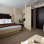 Номера - одноместные, двухместные и трехместные, неизменно отличаются уютом. Среди дополнительных услуг, которые гостиница предлагает своим гостям - проведение конференций. Кроме того, наши гости могут отлично провести время в бильярдной, а также посетить великолепную сауну с бассейном.