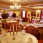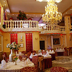 При умеренной цене он отличается изысканной строгой роскошью, украшен букетами цветов. Интерьер ресторана выдержан в едином стиле. Десятиметровые потолки обеспечивают свежесть воздуха и простор. Цветы оживляют интерьер и являются прекрасным фоном для фотосессий.