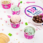 В нашем ассортименте представлены самые разнообразные сорта мороженого, среди которых сорта с пониженным содержанием жира и без сахара. Мороженое производится исключительно из натуральных, экологически чистых ингредиентов, отобранных специалистами «Baskin Robbins» по всему миру. В состав нашего мороженого входят сливки высокого качества, натуральная клубника, вишня, цельный обжаренный миндаль, шоколадное печенье, карамель, орехи пекан, грецкие орехи, пастила и многое другое.