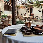 Есть собственная парковка, уютный большой зал вместимостью до 50 человек и антикварный уголок. Малый зал идеально подходит для деловых встреч и переговоров, романтических ужинов. Также к Вашим услугам летний колоритный дворик вместимостью до 50 человек.
