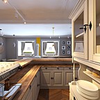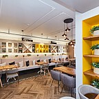 У нас два зала: на первом и втором этаже. Концепцию заведения вкратце можно описать двумя словами: "Все для людей".Зал на первом этаже довольно камерный: барная стойка, несколько столиков с удобными креслами и диванчиками.Второй зал делится на несколько зон. Здесь продолжается «ламповая» история об уюте и теплом времяпрепровождении. На это намекают "кухонные" шкафчики на стенах.