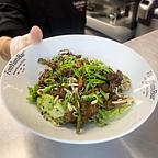 В меню корейская, вьетнамская, тайская, японская кухня: супы том кха, фо бо; карри; салаты поке; запечённые роллы; блинчики роти, вегетарианские блюда.