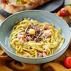 Продуманное зонирование зала предоставляет каждому гостю атмосферу соответствующую поводу встречи. Ароматная пицца на тончайшей лепешке, изысканная лазанья, лучшая в городе паста, которую мы каждый день готовим вручную, приветливые улыбчивые официанты – все эти детали привлекают все новых и новых гостей.