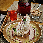 В уютной и камерной обстановке посетителям предлагают попробовать множество закусок, блюда из нерки, палтуса, угольной рыбы, гребешка, кальмара, оленины, лося и многое другое. Также здесь представлена большая винная и барная карты.