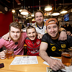 Уникальный интерьер с элементами фанатской атрибутики, 7 больших экранов для просмотра трансляций с любого столика и огромное количество развлекательных мероприятий!